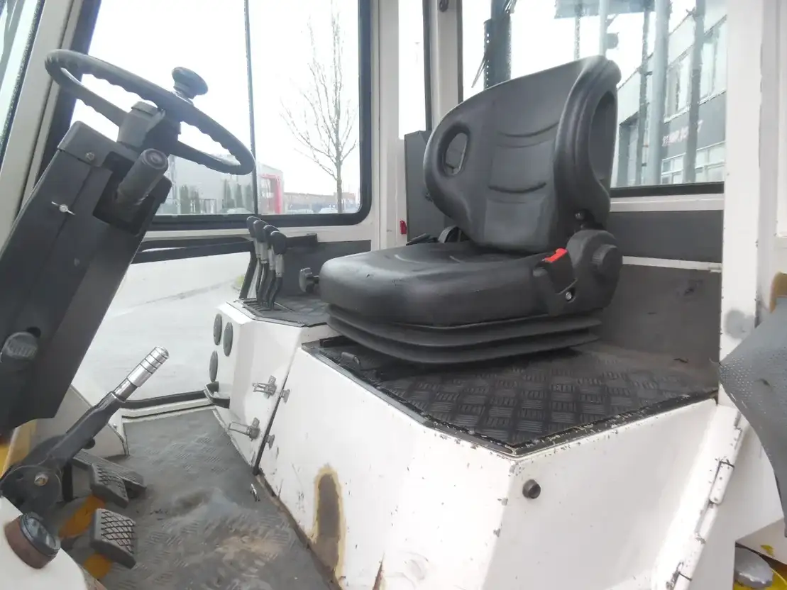 Zeer nette en goed werkende heftruck van het merk Daewoo heeft een triplo mast met vrije heffing en een dichte cabine met verwarming weinig uren en een vork versteller met side shift